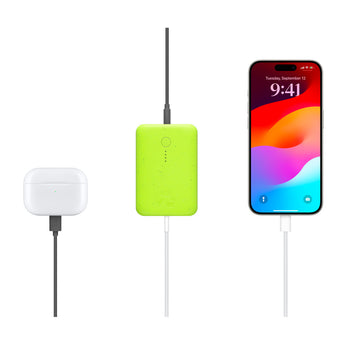 Smaller than a deck of cards, the ultra-compact Nimble CHAMP™ 10,000 mAh Dual USB-C Portable Charger features up to 20W fast charging to quickly restore the battery life of your iPhone, iPad, or any two Apple devices when you need it most. CHAMP is made with 100% recycled plastic, and includes a durable lanyard loop for attaching to a backpack or handbag, so reliable power is always within reach.