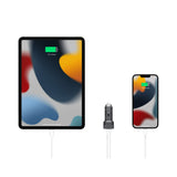 The mophie Dual USB-C 40W PD Car Charger can charge two devices while you drive. The USB-C and USB-C PD ports deliver a shared output of up to 40W to your iPhone or iPad.* This compact charger turns your car’s 12V auxiliary port into a convenient power source for your portable devices.