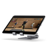 The Satechi Foldable Aluminum Stand elevates any mobile device to a modern workstation for your home office or on-the-go. A perfect balance of sleek and sturdy, it's constructed from solid aluminum with protective pads in all the right places and adjustable hinges to provide an optimal angle across a variety of devices. Whether its streaming home workout videos on your iPad, or joining family FaceTime calls on your iPhone, the Aluminum Foldable Stand creates an ideal setup for easy viewing. And it easily folds up to store away or take with you.