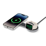 Can be used as a hands-free display stand for iPhone or a charging pedestal for Apple Watch.
